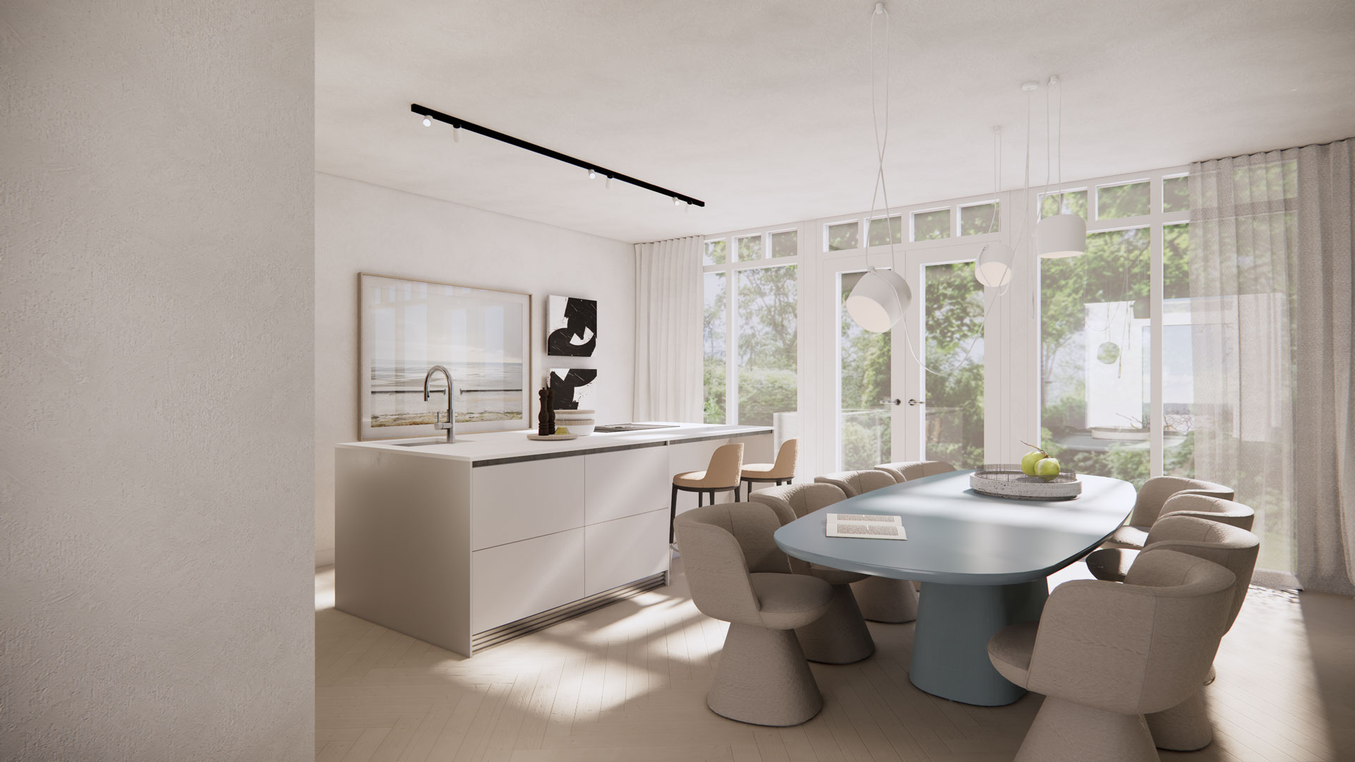 De bekende Amsterdamse ontwerpstudio Grand&Johnson is als interieurarchitect betrokken bij het project en kan naar wens en behoefte van u als koper(s) een maatwerk interieurontwerp realiseren. Ook kunnen zij u begeleiden in het maken van de keuzes voor de inrichting en stoffering van uw woning.
