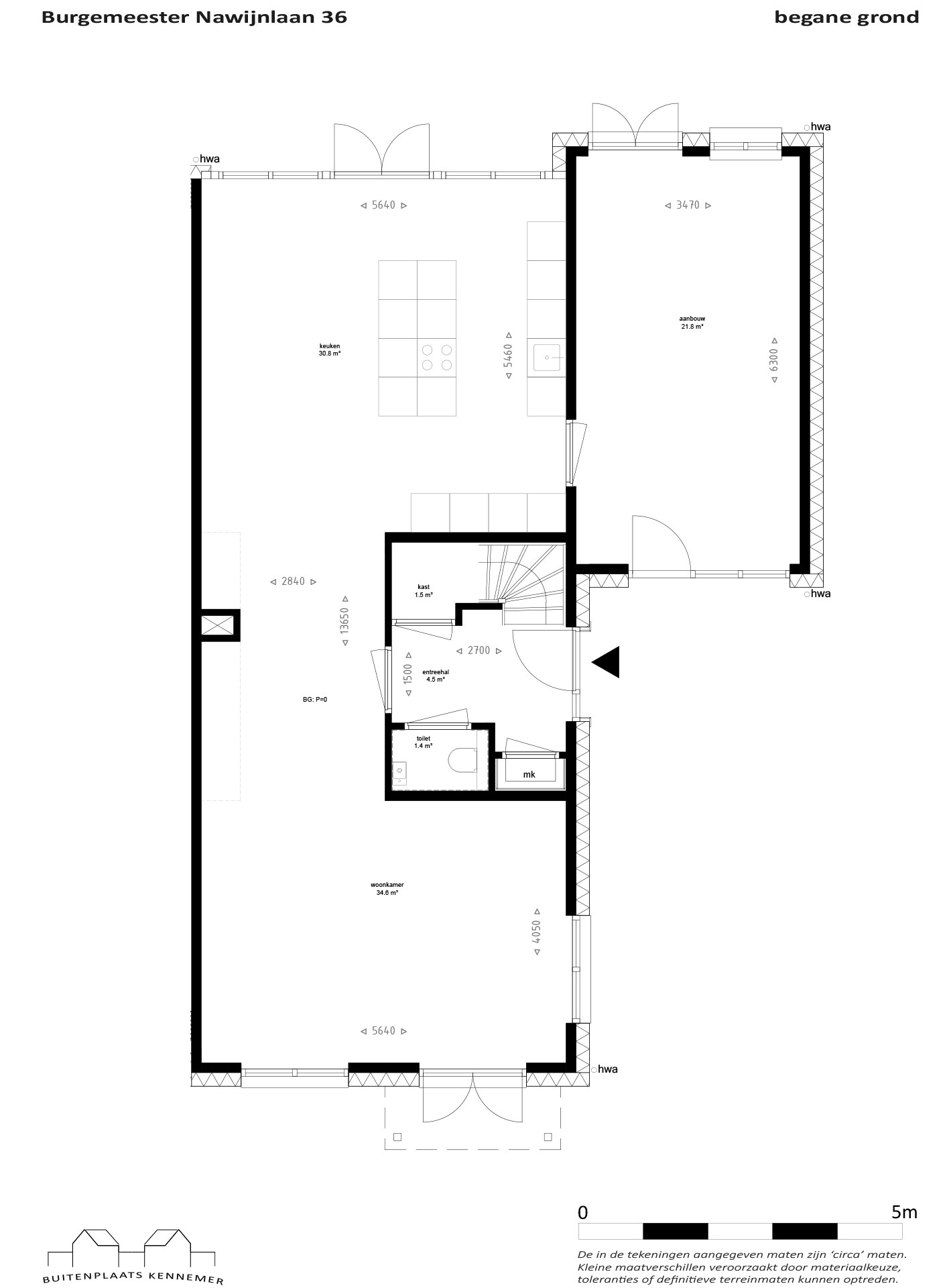 De entree van de woning bevindt zich aan de voorzijde, bereikbaar via de voortuin. De ruime hal met toilet biedt toegang tot de royale woonkamer met erker aan de voorzijde. Aan de achterzijde ligt de semi-open keuken (nog te plaatsen) met directe toegang tot de zonnige achtertuin. Vanuit de keuken is tevens een multifunctionele kamer bereikbaar: ideaal als thuiswerkplek, speelkamer of tv-kamer.
