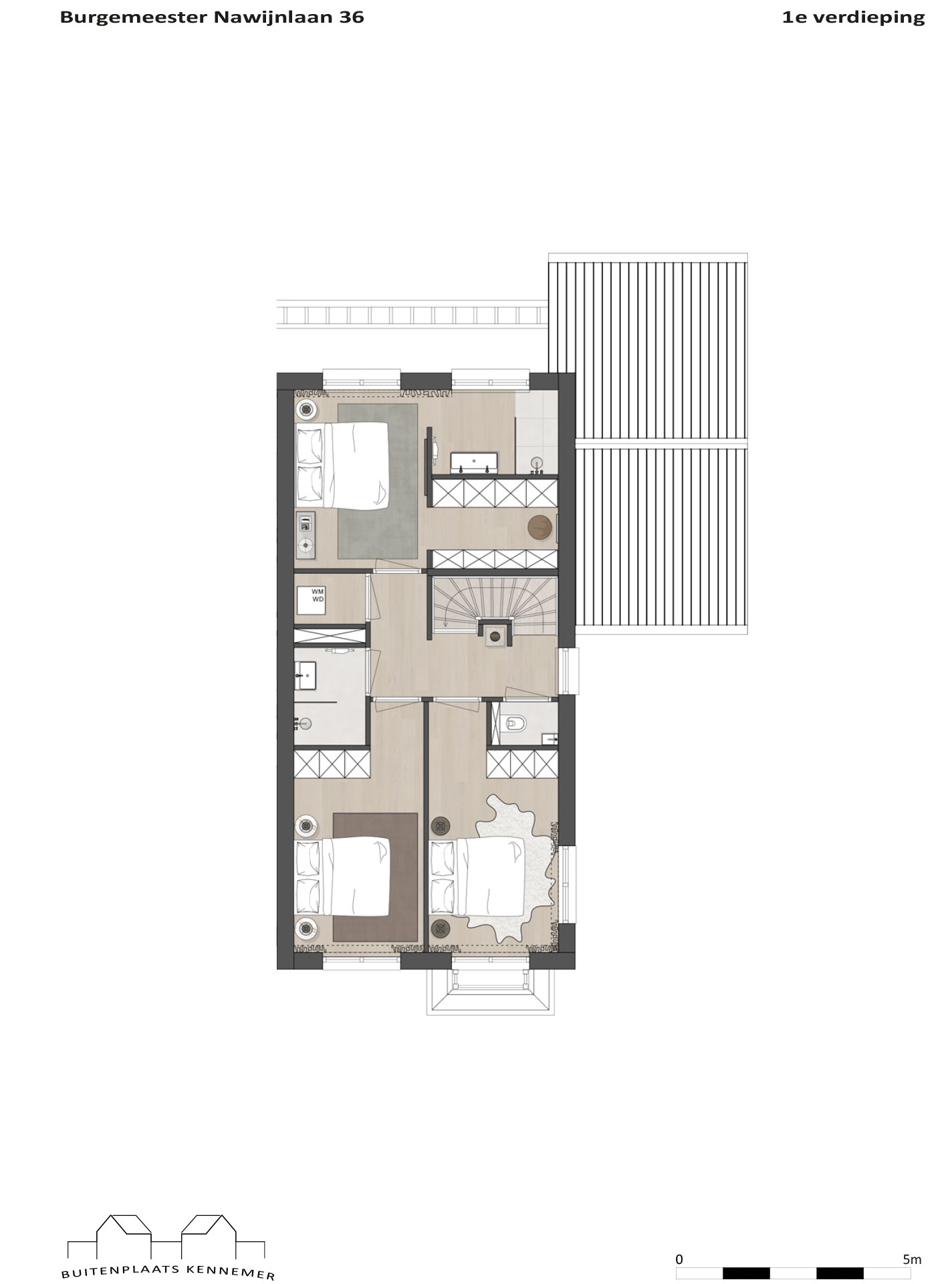 Dit exclusieve en royale herenhuis is onderdeel van het kleinschalige project Buitenplaats Kennemer, bestaande uit vier luxe twee-onder-een-kapwoningen in Zandvoort.